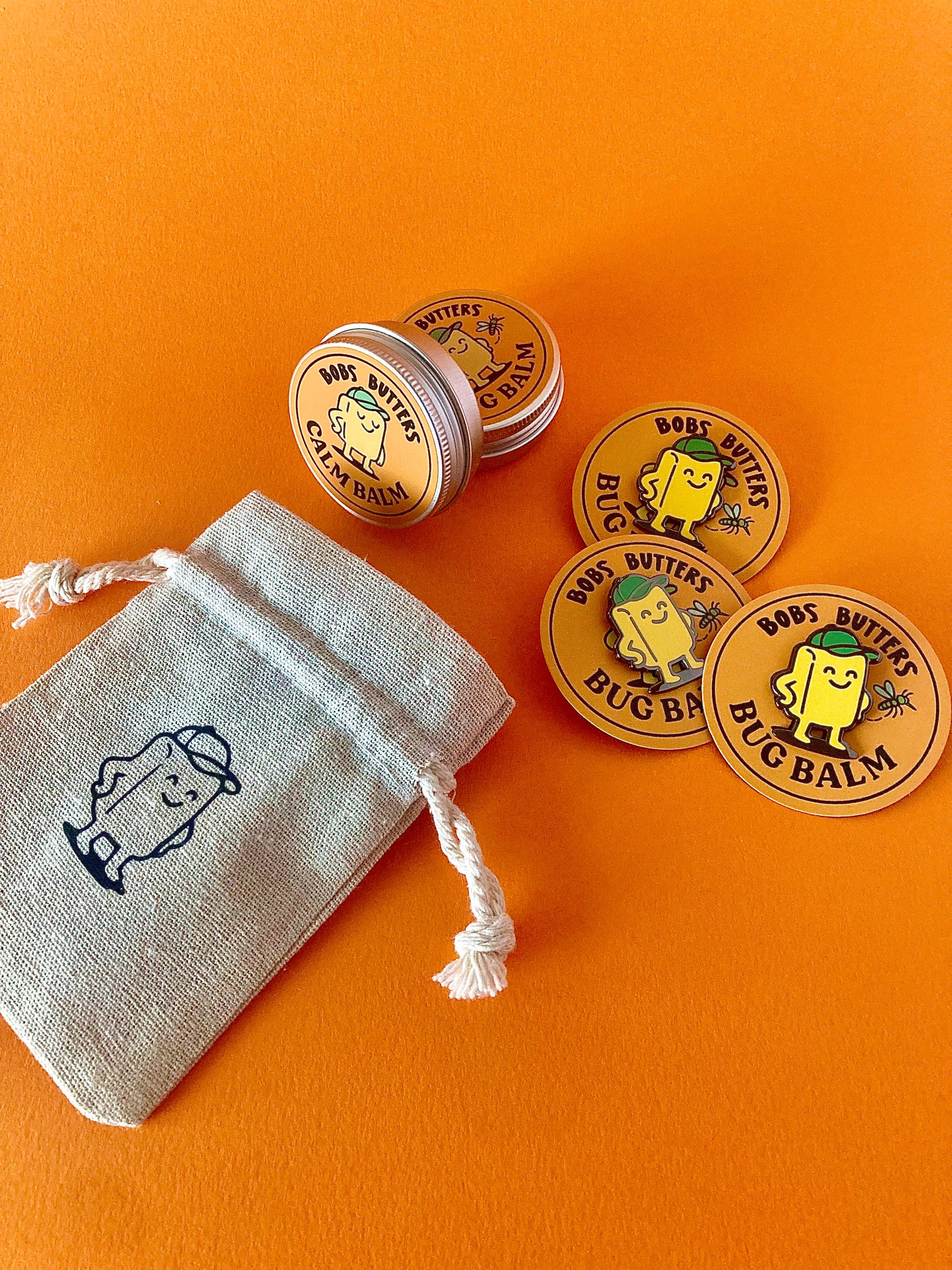 Grab a tin of your favourite balm and combine it with a Butterman pin, all contained within a cute custom Bobs Butters cotton bag. Perfect for gifting, or just keep it all for yourself!